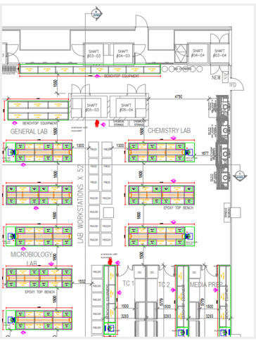 A flexible raw material supply system is extremely important for most laboratory designs. The laboratory must be able to easily connect or disconnect on walls and ceilings to consider fast and low-cost equipment assembly. The supply system needs to meet initial requirements and adapt to expected future development plans.